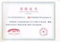 工信部鑄造行業(yè)準(zhǔn)入證書